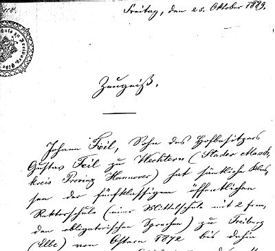 erhielt in seinem Zeugnis vom 25.10.1889 vom damaligen Rektor Otto